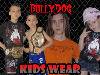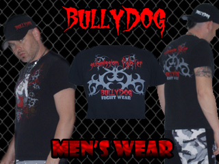 © 2008 - 2010 BullyDog Fight Wear : BullyDog is a Regestered Trademark. ® BullyDog Fight Wear sells clothing geared toward extreme MMA & does not condone nor endorse dog fighting!